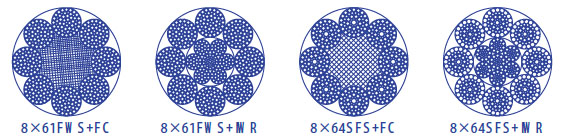 繩結(jié)構(gòu):8×61FWS+FC 8×61FWS+IWR 8×64SFS+FC 8×64SFS+IWR